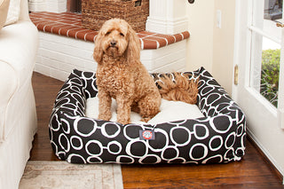 Our Contemporary Lounge Beds offer both style and functionality for your pet. Featuring removable covers for easy cleaning, these beds come with a reversible center cushion, with one side covered in cozy Sherpa. The open front design ensures easy access, making it perfect for pets of all ages to comfortably lounge and relax.