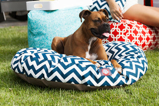Our round dog beds are designed for both style and ease. Featuring zippered, removable covers, these beds are machine washable for effortless cleaning. Filled with soft polyester fiberfill, they provide a cozy and supportive haven for your pet. The round shape is perfect for dogs who love to curl up and relax.
