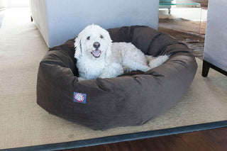 Our luxe bagel beds offer unparalleled comfort and support for your pet. Featuring a removable cover for easy cleaning, these beds include a reversible center cushion with cozy Sherpa on one side. The bolstered design provides added security and comfort, making it the perfect spot for your pet to snuggle and relax. Available in various sizes and colors, these beds blend seamlessly with any home decor.